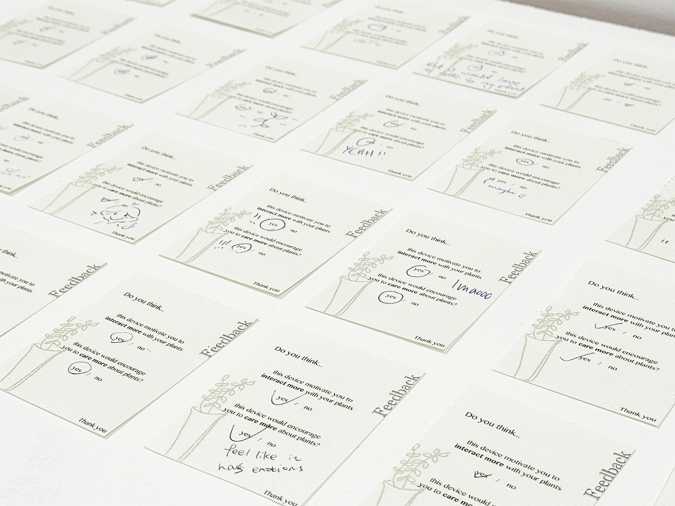 We also collected written feedback, which showed that over 80% of participants felt more motivated to revisit and care for their plants. While some found the meme-based audio confusing or distracting, many imagined the sounds as the plant’s “voice,” revealing a strong curiosity about plant expression and multispecies communication.