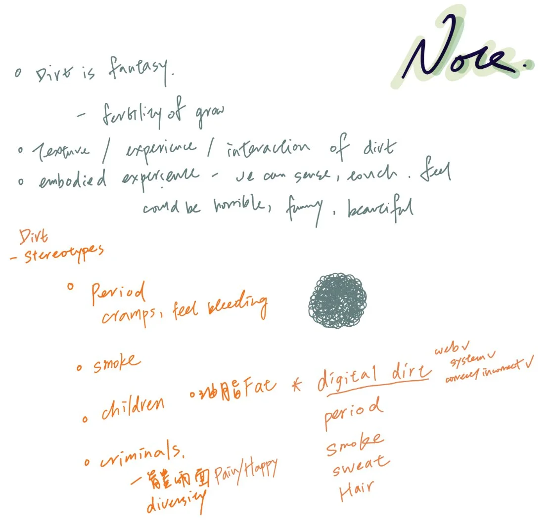 This was our first project using research methods, so I am still learning to use the methods to assist and trigger more ideas. And it's nice that we spent time together understanding them to explore the topic better. While our group had many interesting ideas, we struggled with execution and presentation, leading us to set some aside. However, I still find hair an intriguing form of “dirt,” offering a unique perspective—like dirt in some contexts but not in others.