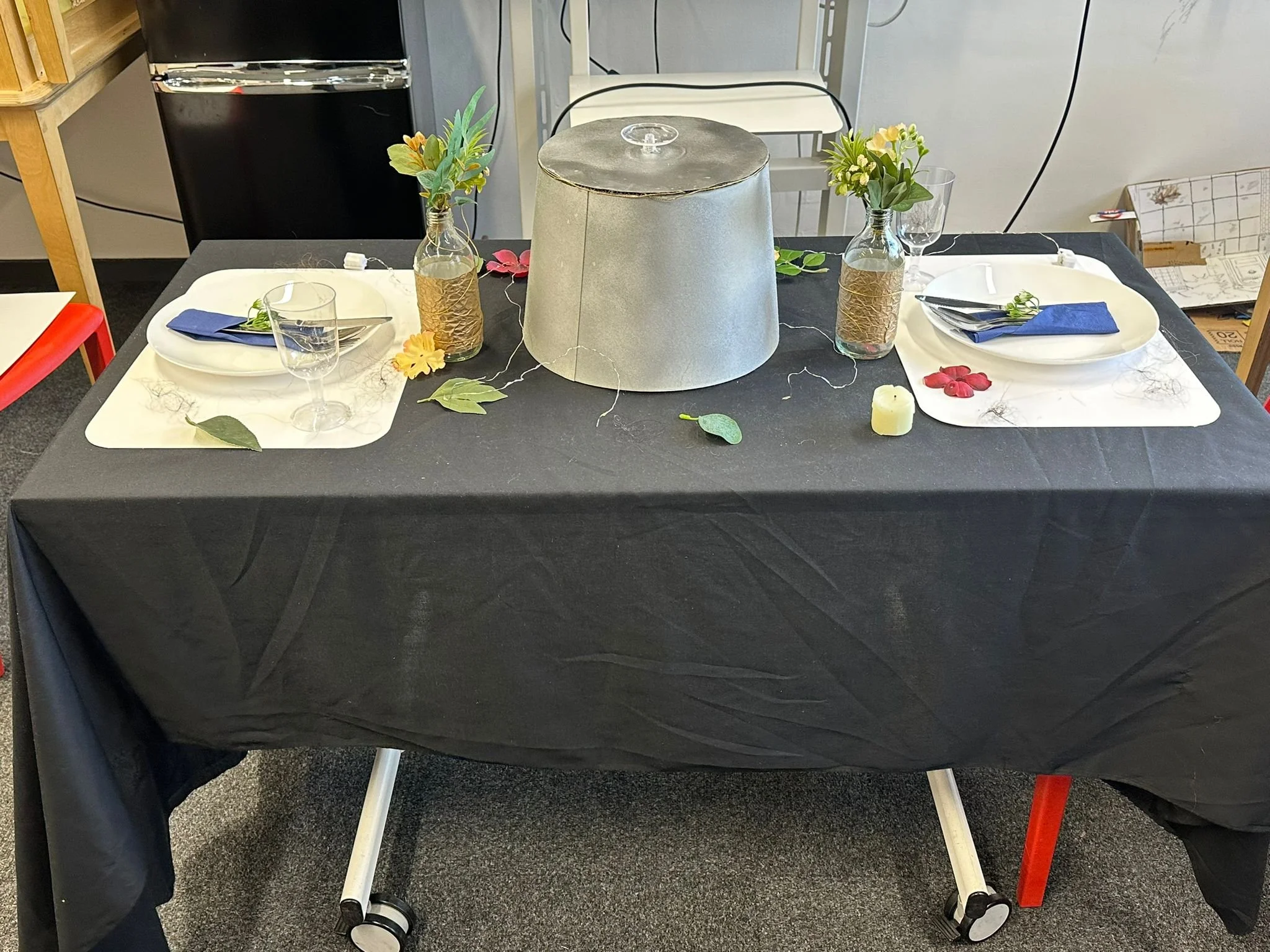 We set up a fine-dining experience complete with music, lighting, and cloches to mimic a high-end restaurant. However, every dish, piece of tableware, and the entire table was covered in hair—both real and synthetic. This unsettling twist disrupted the luxurious atmosphere, provoking reflection on norms, discomfort, and the unexpected in seemingly ordinary settings.